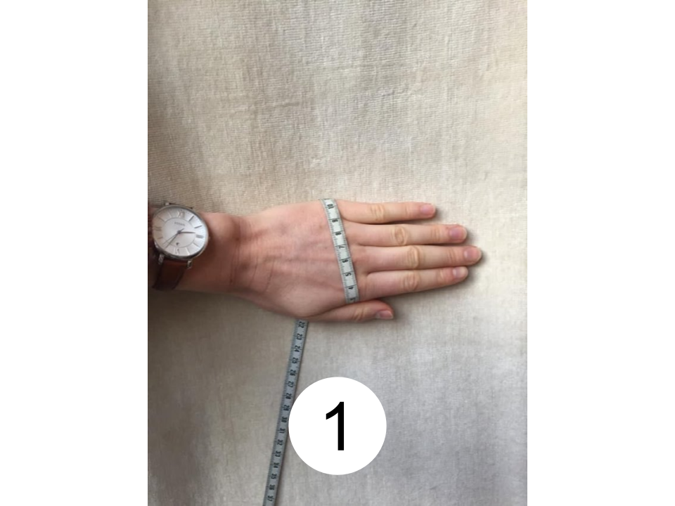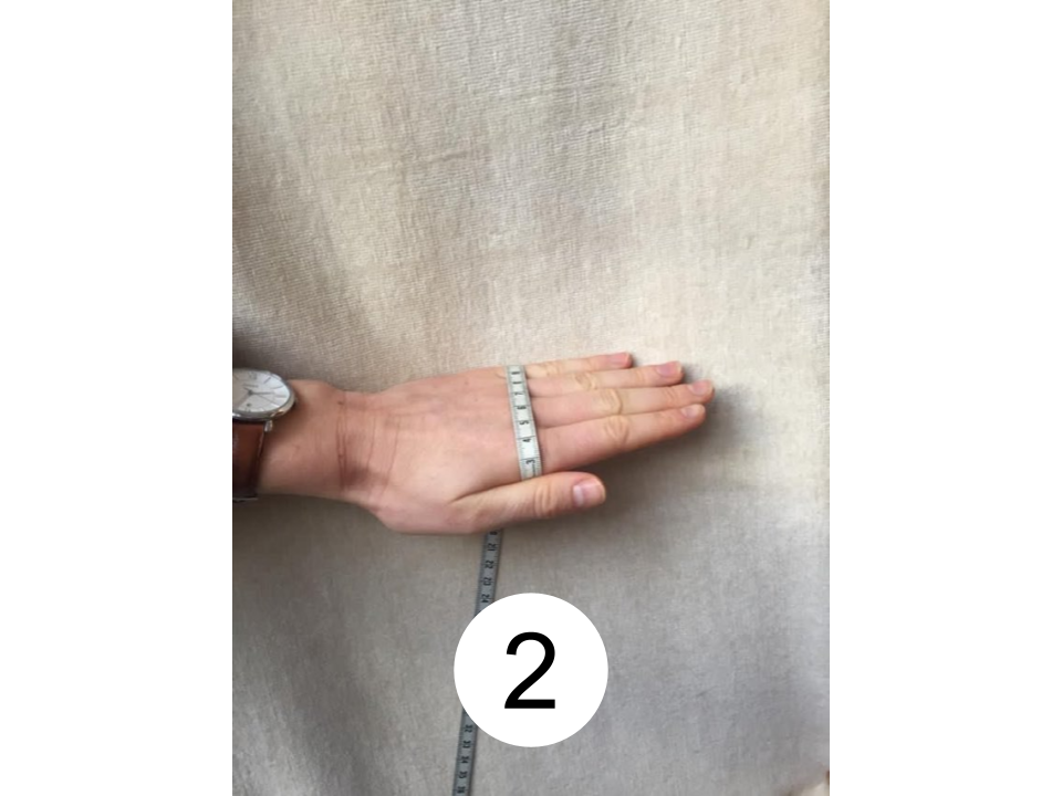 1. Appliquer le centimètre sur le dessus de la main en le tenant avec le pouce et en couvrant les onces.